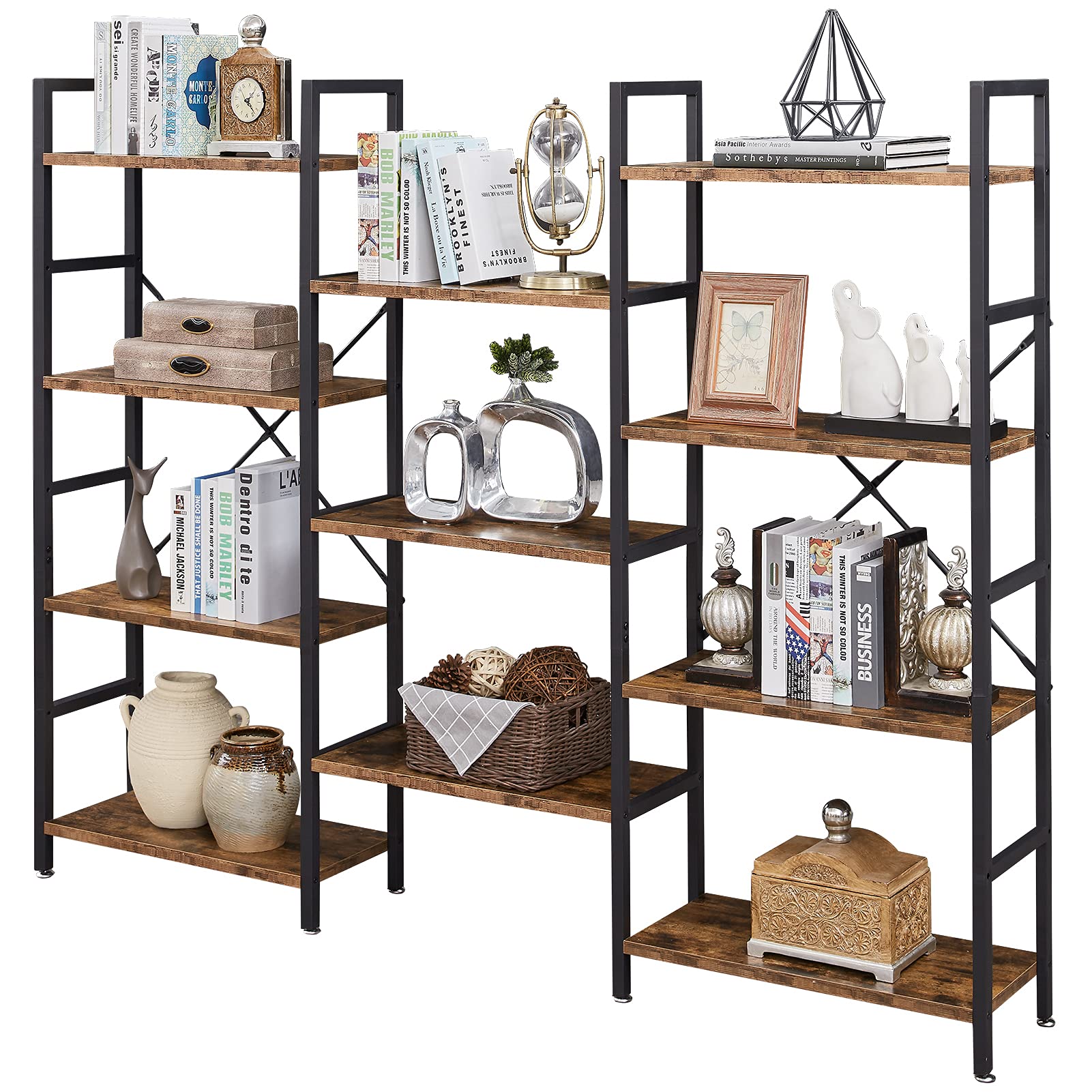 Amazon Com Superjare Triple 4 Tier Bookshelf Bookcase With 11 Open Display Shelves Wide Book Shelf Book Case For Home Office Rustic Brown Home Kitchen